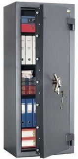 запатентованная многослойная защита стенки и двери сейфа (сэндвич с композиционными материалами); 3-х сторонняя усиленная ригельная система запирания; защита ригельного механизма каленым стеклом; защита замков и ригелей от высверливания и выбивания; система блокировки ригельного механизма при выбивании замка; отверстие в задней стенке для установки сигнализации; толщина защитного слоя двери – 50 мм, общая толщина двери - 100 мм; толщина боковых стенок - 55 мм; два ключевых замка KABA MAUER (класс В, ГОСТ), (в комплекте 3 ключа);наличие анкерного крепления к полу, анкерный болт в комплекте;