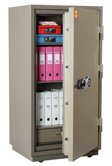 FRS-140T EL предназначен для сохранности документов и ценностей при пожаре огнестойкость: ГОСТ Р 50862-2012: класс 60Б (РСБ-С), класс 60Б (ГОСТ Р) при заливке двери и корпуса сейфа используется запатентованный состав огнестойкого бетона тепловой замок, усиленный огнестойким уплотнителем оборудованы пластиковыми ножками комплектуются кодовым электронным замком + ключевой замок предусмотрено анкерное крепление к полу (испытание на огнестойкость проведено с анкерным отверстием) в комплекте 2 полки и кассовое отделение-трейзер (135/515/372) цвет: корпус - оттенок коричневого с эффектом молотковой эмали, дверь - оттенок зеленого с эффектом молотковой эмали тип покрытия: порошковое None