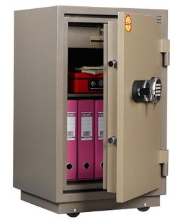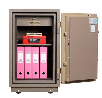 FRS-80T EL предназначен для сохранности документов и ценностей при пожаре огнестойкость: ГОСТ Р 50862-2012: класс 60Б (РСБ-С), класс 60Б (ГОСТ Р) при заливке двери и корпуса сейфа используется запатентованный состав огнестойкого бетона тепловой замок, усиленный огнестойким уплотнителем оборудованы пластиковыми ножками комплектуются кодовым электронным замком + ключевой замок предусмотрено анкерное крепление к полу (испытание на огнестойкость проведено с анкерным отверстием) в комплекте 1 полка и кассовое отделение-трейзер (85/343/267) цвет: корпус - оттенок коричневого с эффектом молотковой эмали, дверь - оттенок зеленого с эффектом молотковой эмали тип покрытия: порошковое None
