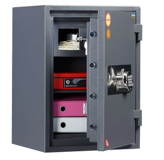 сейф ГАРАНТ ЕВРО 67T EL предназначен для сохранности документов и ценностей при пожаре и взломе одобрены ассоциацией Российских производителей и поставщиков сейфов и банковских систем безопасности рекомендованная сумма хранения денег до 5 млн. руб. для физических лиц и до 2.5 млн. руб. для юридических лиц устойчивость к взлому: ГОСТ Р 50862-2012: класс 1 (РСБ-С), класс 2( ГОСТ Р) огнестойкость: ГОСТ Р 50862-2012: класс 60Б (РСБ-С ); класс 60Б (ГОСТ Р) при заливке двери и корпуса сейфа используется запатентованная система армирования огнестойкого бетона 1 полка; кассовое отделение - трейзер 3-х сторонняя усиленная ригельная система запирания защита замка и ригелей от высверливания и выбивания система блокировки ригельного механизма при выбивании замка тепловой замок, усиленный огнестойким уплотнителем толщина защитного слоя двери – 33 мм, общая толщина двери - 105 мм комплектуются кодовым электронным замком PS 600 (ПРОМЕТ, класс В, ГОСТ, ECB-S) наличие анкерного крепления к полу, анкерный болт в комплекте цвет: графит структурированный тип покрытия: грунт-эмаль None