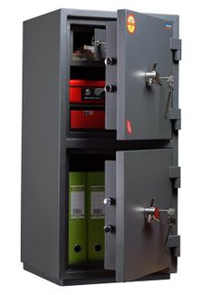 Сейф VALBERG ГРАНИТ 90/2Т предназначен для защиты документов и ценностей от несанкционированного доступа (взлома) и от пожара: рекомендованная сумма хранения денег до 5 млн. руб. для физических лиц и до 2 млн. 500 тыс. руб. для юридических лиц устойчивость к взлому по ГОСТ Р 50862-2012: класс 1 (РСБ-С); класс 2 (ГОСТ Р) огнестойкость: ГОСТ Р 50862-2012, класс 30Б, РСБ-С, класс 30Б при заливке двери и корпуса сейфа используется специальный тяжелый бетон корпус сейфа ГРАНИТ 90/2Т и дверь заливные; толщина стенок - 40 мм 3-х сторонняя усиленная ригельная система запирания защита замка и ригелей от высверливания и выбивания система блокировки ригельного механизма при выбивании замка огнестойкость обеспечивают термоактивные прокладки ключевой замок KABA MAUER (класс В, ГОСТ) наличие анкерного крепления к полу, анкерный болт в комплекте цвет: графит структурированный тип покрытия: эмаль 2 полки в комплекте None
