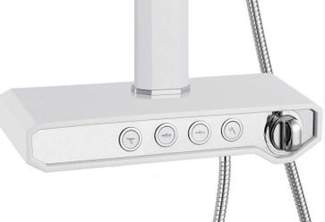 Тип душевая стойка Цвет хром, белый Стилистика дизайна современный стиль Материал пластик Смеситель однорычажный Диаметр лейки, см 12 Высота штанги, см 121.9 Длина шланга, см 150 Диаметр верхнего душа, см 20 Гарантия 5 лет Производитель Китай None Есть доставка.