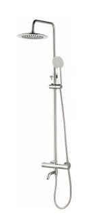 Класическая душевая стойка с термостатическим смесителем, поворотным изливом и тонким тропическим душем. None Есть доставка.