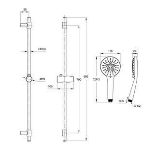 Назначение: Душевой гарнитур Torr Коллекция: Torr Верхний душ: нет Размер лейки: 110 мм Количество режимов лейки: 3 Шланг: нержавеющая сталь; 1,5 м; cистемы Twist-Free и Double Lock Режимы лейки: Rain, Massage, Rain&Massage Высота стойки: 800 мм None Страна производства: Россия