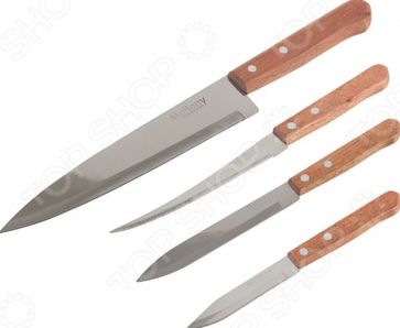 Практически ни одно приготовление блюд не обходится без ножей. Эти универсальные инструменты помогают нарезать различные продукты, подготовив их к варке, жарке или тушению. Чаще всего на кухне используются наборы, состоящие из нескольких ножей разного размера, каждый из которых удобен в определенных случаях, поэтому заранее позаботьтесь о том, чтобы купить набор ножей. Набор ножей Mallony Albero комплект инструментов, необходимых на каждой кухне. Лезвия ножей изготовлены из высококачественной нержавеющей стали, что обеспечит прочность, надежность, практичность и долговечность. Изделия обладают остротой и не подвержены образованию коррозии. Все предметы имеют эргономичную деревянную рукоятку. Оптимальная форма лезвия позволит легко затачивать ножи. Изделия легко моются. Универсальные ножи станут необходимым и полезным дополнением к кухонной утвари и порадуют своим качеством. Набор состоит из 4 предметов и включает: поварской нож с длиной лезвия 20 см; универсальный нож с длиной лезвия 15 см; нож для овощей с длиной лезвия 12,5 см; маленький овощной нож с длиной лезвия 9 см. None Возможен самовывоз. Есть доставка.