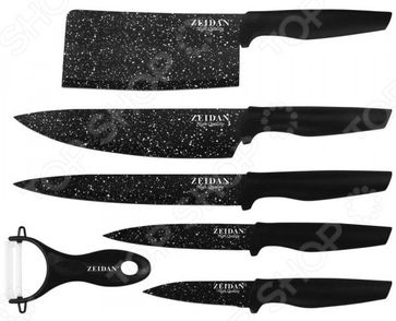 Кухня это место, где всегда приятно провести время, насладившись едой, приготовленной собственными руками. Для того, чтобы сделать пребывание на ней максимально комфортным, нужно предусмотреть все мелочи. Набор ножей Zeidan Z-3095 комплект, состоящий из шести предметов, предназначенный для ежедневного применения. Используется для нарезки фруктов и овощей, мяса, сырокопченых изделий и других продуктов. Лезвия ножей с безупречной заточкой сделают готовку максимально комфортной и приятной. Лезвия из нержавеющей стали имеют безупречную заточку и оптимальную жесткость. Материал длительное время сохраняет остроту, не подвергается коррозии и не придает пище металлический привкус. Мраморное антибактериальное покрытие предотвращает развитие болезнетворных микробов и прилипание пищи, защищает режущую часть от царапин. Рукоятки анатомической формы удобно лежат в руке и не скользят, обеспечивают безопасность нарезки. Что в комплекте Нож поварской 20 см 1,5 мм используется для нарезки филе, шинковки зелени, капусты и других овощей; более толстой частью лезвия нарезают мясо и рубят тонкие кости; плоской частью лезвия можно легко давить зубки чеснока. Нож разделочный 20 см 1,5 мм идеально подойдет для нарезки куриного или рыбного филе, сырого или вареного мяса. Незаменим при приготовлении японских рыбных деликатесов. Нож-топорик 17 см 1,5 мм предназначен для нарезания больших кусков мяса и разрубания костей. Нож для чистки овощей 9 см 1,2 мм удаляет кожуру с фруктов и овощей, пригоден для срезания цедры цитрусовых. Нож универсальный 13 см 1,2 мм подходит для нарезки сырных и колбасных изделий, масла, овощей, фруктов. Используется при приготовлении канапе или бутербродов. Нож-топорик 17 см 1,5 мм предназначен для нарезания больших кусков мяса и разрубания костей. Овощечистка с керамическим лезвием. None Возможен самовывоз. Есть доставка.