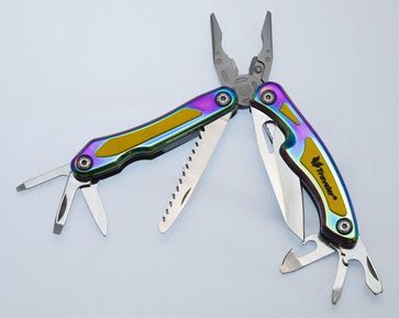 Многофункциональный инструмент имеет в своем комплекте пассатижи с твердосплавной вставкой. Так же в комплект входит основное лезвие с фиксатором, малое лезвие, плоская отвертка, плоская, малая отвертка, крестовая отвертка, универсальный консервный нож, открывашка, пила и удобный чехол для переноски. None