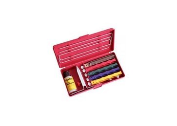 струбцина для зажима и удержания клинка - 1 шт. брусок для заточки - 5 шт. направляющие для брусков - 5 шт. масло для заточки "Nathans Natural Honing Oil" - 1 шт. дополнительные винты - 2 шт. пластиковый пенал для хранения и транспортировки - 1 шт. None