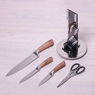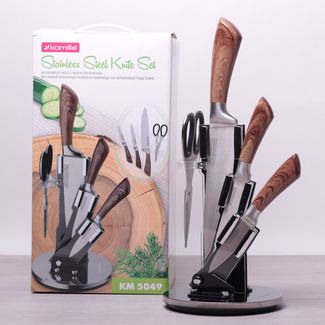 - Набор кухонных ножей и ножницы Kamille 5 предметов на акриловой подставке по выгодной цене 1 550 р. руб.;