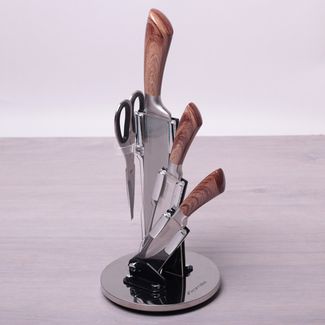 Набор кухонных ножей создан по самым современным и модным технологиям и тенденциям. Он вызовет восторг даже у самого требовательного покупателя. Набор кухонных ножей станет украшением на Вашей кухне и добавит неповторимость к Вашему интерьеру. Материал: нержавеющая сталь, пластик Комплект: