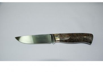 Фирменный отличительный знак ножей Чебуркова — лезвие ножа «утапливается» в гарду. Это дополнительная гарантия того, что клинок будет способен выдержать большую нагрузку и останется целым. Рукояти для ножей изготавливаются только из ценных пород дерева — самых стойких и красивых.Технические характеристики:Твердость: 59-61 HRсСталь клинка: Х12МФ.TМасса: 170 гр.Длина клинка: 110 мм.Длина ножа: 220 мм.Материал рукояти: стабилизированная деревесинаГарда: макумэТолщина клинка: 4 мм.Ножны: кожа None