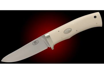 Технические характеристики:Длина общая: 195 ммДлина лезвия: 90 ммТолщина лезвия: 4.5 ммВес: 174 гСталь: Cowry XТвердость: 64 HRCРукоять: Ivory MicartaНожны: Premium Leather None