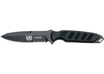 Цельностальной нож Fox серии Unifil. Имеет остросведённый клинок классической формы и частичную серейторную заточку лезвия. Сделан из углеродистой стали, что придаёт ему особую твёрдость и надолго сохраняет качество заточки. Тефлоновое покрытие. Анатомическая рифлёная рукоять, из анодированного алюминия, с абразивными вставками, предотвратит скольжение. Имеет петлю под карабин. На конце рукояти есть стеклобой. На обухе и рукояти с обоих сторон предусмотрены надсечки, также предотвращающие скольжение. Не является лёгким ножом и готов выдержать любые испытания. Поставляется с поясным вертикальным пластиковым жёстким чехлом, особой прочности и надёжной внутренней фиксацией лезвия. Фирменная упаковка. Вес - 177 гр None