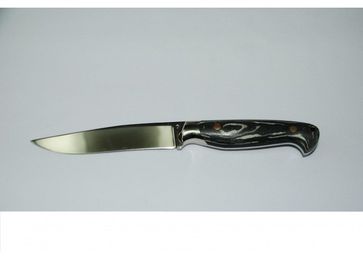 Технические характеристики:Марка стали клинка: сталь Х12МФДлина ножа (мм): 238Длина клинка (мм): 124Длина рукояти (мм): 114Наибольшая ширина клинка (мм): 24Толщина обуха (мм): 4.0Твердость стали: 60 None