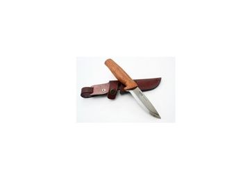 Ножны из коричневой кожи, снабженные ремешком для фиксации ножа в ножнах.С обратной стороны ножен прикреплена петля для ремня.Общая длина: 222 ммДлина клинка: 102 ммМакс. ширина клинка: 28 ммМакс. толщина клинка: 3.0 ммДлина рукояти: 120 ммШирина рукояти (в ср.части): 29 ммТолщина рукояти (в ср.части): 22 мм None