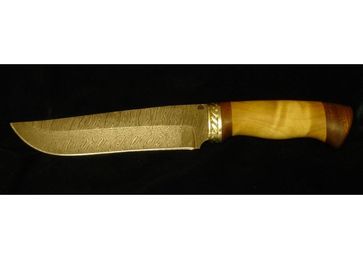 Нож "Таёжный 1" - хороший помощник в лесу охотнику. Им даже можно рубить не толстые ветки для костра. Материал клинка - дамасская стальМатериал рукояти - березаДлина клинка - 175 мм.Ширина клинка - 39 мм.Толщина обуха - 4,2 мм.Длина рукояти - 130 мм. None