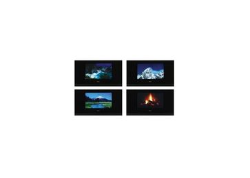 8 вариантов изображения: 3 варианта огня, ручей, море, аквариум, горы, водопад.