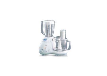 -Мощность 700 Вт -Пластиковая чаша измельчителя 1,5 л -Пластиковая чаша блендера 1,5 л с мерным стаканчиком и функцией измельчения льда -Бесшумная одновременная работа чаши измельчителя и блендера -Система защитной блокировки при незаккрытой крышки -Соковыжималка -Пресс для цитрусовых -Насадка для приготовления теста и пюре -Нож для измельчения из нержавеющей стали -5 дисковых ножей для разного вида нарезки, шинковки из нержавеющей стали -Насадка для взбивания и приготовления крема -9 скоростей, регулятор скорости и режим "Пульс" -Отсек для хранения аксессуаров -Лопаточка None