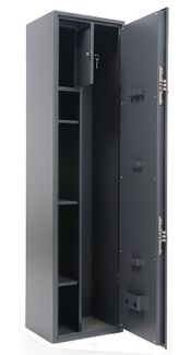 сейф соответствуют требованиям ст.59 Постановления правительства РФ № 814 от 21 июля 1998 года «О мерах по регулированию гражданского и служебного оружия и патронов к нему на территории РФ»; толщина металла корпуса и двери – 2 мм оборудованы патронным отделением, запирающимся на ключ, ложементами для ружей; комплектуется двумя ключевыми замками; наличие анкерных отверстий для крепления сейфа к стене;для 2 стволов максимальная высота ствола 1395 мм; тип замка: два ключевых; цвет: графит (RAL 7024); тип покрытия: порошковое; оборудован патронным отделением (301х178х190), запирающимся на ключ, полками и ложементами для ружей, ковриком;съемный полочный блок - 3 полки - позволяет увеличить количество хранимых ружей None
