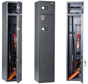 Габариты внешние, ммвысота - 1480ширина - 300глубина - 300Габариты внутренние, ммвысота - 1236ширина - 296глубина - 255 4 стволавысота ствола: 1222 мм.Два электронныx + ключевой замки None