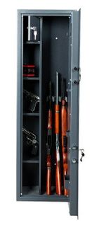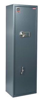 сейфы соответствуют требованиям ст.59 Постановления правительства РФ № 814 от 21 июля 1998 года «О мерах по регулированию гражданского и служебного оружия и патронов к нему на территории РФ»; толщина металла корпуса и двери – 3 мм.;оборудованы патронным отделением, запирающимся на ключ, полками и ложементами для ружей; комплектуется электронным кодовым замком + ключевой; наличие анкерных отверстий для крепления сейфа к стене; количество полок: 3; патронное отделение (трейзер): 222х178х187; количество стволов: 3; цвет: графит (RAL 7024); тип покрытия: порошковое
