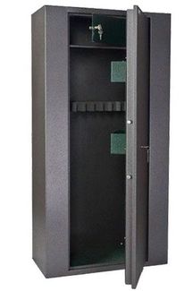 устойчивость к взлому - ГОСТ Р 50862-2005, EuroVDS, CSN-9160010, класс Н0;соответствуют (по заключению НИЦ «Охрана» МВД РФ) требованиям МВД РФ к хранению огнестрельного оружия;толщина стали корпуса сейфа 3 мм., толщина двери составляет 2,5+2 мм, общая толщина - 55 мм.;трехсторонняя система запирания сейфов - сейф оборудован двумя ключевыми зависимыми замками;предусмотрена возможность крепления к полу и стене для обеспечения максимальной надежности;есть подсветка внутреннего пространства;дно сейфа выстилается войлоком;2 съемных кармана;для 10 стволов высотой 1290 мм.;трейзер. None