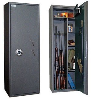устойчивость к взлому - ГОСТ Р 50862-2005, EuroVDS, CSN-9160010, класс Н0;соответствуют (по заключению НИЦ «Охрана» МВД РФ) требованиям МВД РФ к хранению огнестрельного оружия;толщина стали корпуса сейфа 3 мм., толщина двери составляет 2,5+2 мм, общая толщина - 55 мм.;трехсторонняя система запирания сейфов - сейф оборудован двумя ключевыми зависимыми замками;предусмотрена возможность крепления к полу и стене для обеспечения максимальной надежности;есть подсветка внутреннего пространства;внутри сейф разделен перегородкой, которая делит сейф на 2 части - одна с полками, другая - для оружия;дно сейфа выстилается войлоком;3 полки ;для 5 стволов высотой 1300 мм.;трейзер. None
