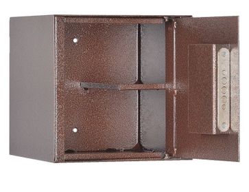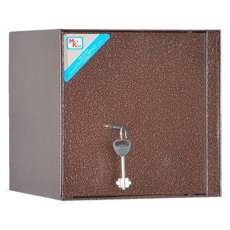 корпус шкафа толщиной 2 мм, дверь толщиной 2 мм.;на задней стенке корпуса расположены отверстия для крепления; в двери установлен ключевой 8-ми сувальдный замок ЗАО «Про-Сам» г. Рязань или аналогичный замок другого производителя; цвет: медь None