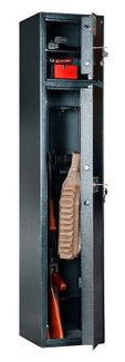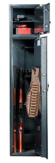 сейф соответствуют требованиям ст.59 Постановления правительства РФ № 814 от 21 июля 1998 года «О мерах по регулированию гражданского и служебного оружия и патронов к нему на территории РФ» и приказом МВД РФ №308 от 14.07.2003; устойчивость к взлому: ГОСТ Р 55148-2012, класс S1, соответствует классу оружейных сейфов А1 в соответствии с требованиями ГОСТ Р 56367-2015; толщина металла корпуса – 3 мм; толщина металла двери – 5 мм.; 3-х сторонняя ригельная система запирания (диаметр ригеля 18 мм); оборудованы патронным отделением (трейзер), запирающимся на ключ (соответствующий 3 классу по ГОСТ Р 5089-2003 или замок не ниже класса А по ГОСТ 51053-2012), полками и ложементами для ружей; комплектуются ключевым замком Kaba Mauer (класс А по ГОСТ Р 51053-2012; наличие анкерных отверстий для крепления сейфа к полу и стене; патронное отделение (трейзер): 298х294х242; на 4 ствола высотой 1163 мм.; 5 полок; цвет: серебристый антик; тип покрытия: порошковое. None