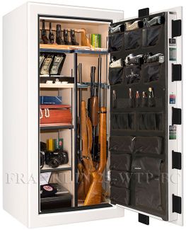 Жемчужно белый, автомобильный глянец (фурнитура черный хром) Универсальный сейф, может использоваться как в качестве оружейного сейфа, так и в качестве личного сейфа Производство Liberty Safe and Security Products, Inc (США, штат Юта) Сейфы Liberty сертифицированы на взломостойкость и огнестойкость в США Полностью удовлетворяют требованиям МВД Великолепный дизайн! Сейфы изготавливаются непосредственно в США.