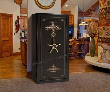Зеркальный чёрный, при изготовлении покрытий для этих сейфов используется специальный декоративный автомобильный металлик, такие же покрытия используются при производстве американских автомобилей премиум класса; универсальный сейф, может использоваться как в качестве оружейного сейфа, так и в качестве личного сейфа; производство Liberty Safe and Security Products, Inc (США, штат Юта). Сейфы Liberty сертифицированы на взломостойкость и огнестойкость в США; полностью удовлетворяют требованиям МВД. Сейфы изготавливаются непосредственно в США; Штурвал сейфа имеет покрытие золотом 24 карата.