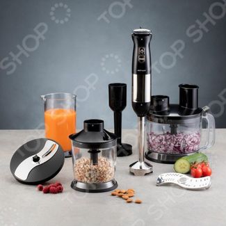 Мультиблендер Delimano Делюкс 7 в 1 c мощным мотором 600 Вт и скоростью вращения до 16000 об мин представляет собой многофункциональную, удобную, простую в управлении кухонную технику. Широкая комплектация, лезвия из высококачественной нержавеющей стали, 10 cкоростей и режим Turbo, низкий уровень шума 58 дБ делают мультиблендер лучшим выбором для вашей кухни. Эргономичный, легкий прибор не займет много места на столе, это настоящая альтернатива громоздкому комбайну. Устройство совмещает в себе 7 разных функций: Погружной блендер. Электрический венчик. Малый измельчитель 500 мл . Большой измельчитель 1000 мл . Терка. Шинковка. Насадка для приготовления пюре. Расширенный набор насадок и аксессуаров К этому устройству прилагается множество насадок, с помощью которых можно измельчать, натирать, шинковать, готовить тесто, взбивать, смешивать, пюрировать: Большая чаша 1000 мл помимо измельчения предназначена для шинковки и терки продуктов. Подходит для обработки моркови, огурцов, твердой дыни, лука, чеснока, трав, орехов, шоколада, фруктов. Поможет нарезать салями и натереть сыр для пиццы, быстро приготовить фарш, фруктовый или овощной салат.. Малая чаша 500 мл отлично подходит для измельчения небольшого количества ингредиентов травы, твердые овощи, сыр, орехи, мясо . Для работы с чашей 500 мл предусмотрены: крышка измельчителя, нож с двойным лезвием. Для работы с чашей 1000 мл предусмотрены: S-образный нож с двойным лезвием, насадка-шинковка, насадка-терка, диск для закрепления насадок, крышка с загрузочной горловиной. Насадка-венчик из нержавеющей стали взбивает любые жидкие ингредиенты, например, сливки, белки, молоко. Насадка-блендер из нержавеющей стали качественно измельчает и смешивает продукты, в том числе горячие крем-супы. Насадка для приготовления картофельного пюре разминает вареный картофель и мягкие овощи. Стакан 700 мл с мерной шкалой и резиновой крышкой идеален для приготовления освежающих смузи, овощных или фруктовых пюре. Хранить продукт
