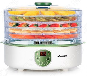 Сушилка для овощей и фруктов KITFORT КТ-1902 устройство для сушки продуктов растительного происхождения: фрукты и овощи, ягоды, грибы и даже лекарственные растения. Также подойдет для мяса, рыбы и хлеба. Домашние сухофрукты не только очень вкусные, но и полезные, поскольку содержат больше активных микроэлементов в отличие от свежих плодов. Однако естественный процесс сушки требует много пространства и временных затрат, чего так не хватает в современном ритме жизни. На помощь приходит сушилка для овощей, обладающая следующими преимуществами: Скорость. Одна партия сухофруктов готовится за несколько часов. Больше не нужно тратить дни и даже целые недели на получение хотя бы одного килограмма продукта. Вместительность. Сушка естественным путем требует много места, чтобы разложить все плоды. А вот в сушилке все ингредиенты размещаются компактно в несколько слоев. Сохранность плодов. При естественной сушке часть плодов может испортиться. В электросушилке создаются оптимальные условия для получения максимального количества сухофруктов, готовых к употреблению. Съемные поддоны устанавливаются в двух положениях по высоте, что удобно при выкладке продуктов разного размера. В основании прибора установлен вентилятор и нагреватель с датчиком контроля температуры: сушилка рассчитана на длительные режим работы в течение 72 часов. После рекомендуется сделать перерыв как минимум на 1 час. Сушилка оснащена таймером до 72 часов с шагом в 1 час. Доступна настройка температуры в диапазоне от 35-70 C с шагом в 5 градусов. None Возможен самовывоз. Есть доставка.