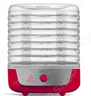 Сушилка для овощей и фруктов Мастерица СШ-0205К станет отличным дополнением к набору вашей бытовой техники для кухни. Представленная модель предназначена для быстрой и качественной консервации зелени, овощей и фруктов для их дальнейшего хранения. Прибор отличается от аналогов тем, что позволяет использовать до 8 поддонов одновременно, 2 из которых со съемной сеткой, что дает возможность устанавливать емкости для приготовления йогурта. В сушилке вентилятор располагается внизу основания. Поток воздуха проходит вверх через поддоны, что помогает равномерно и быстро продувать продукты на любом ярусе. Температура в сушилке регулируется в рамках от 35 до 70 С. Оцените преимущества Скорость приготовления партия сухофруктов будет готова через несколько часов. Устройство сэкономит место на кухне и вам не придется раскладывать продукты также, как при естественной сушке. Равномерные потоки разогретого воздуха позволяют сохранить все полезные свойства свежих продуктов и их первоначальный вкус. Представленная модель может работать с двумя объемами продуктов 23 л и 30 л. Диаметр прозрачных поддонов составляет 33 см, высота до 40 мм. Сушилка сделана из первичного пищевого пластика, не шумит. Класс защиты от поражения электрическим током II. Терморегулятор позволяет подобрать необходимую температуру в зависимости от поставленной задачи. Управление механическое. Работает прибор от сети. В комплекте также идут и баночки 9 шт для приготовления йогурта. Книга рецептов. Изделие выполнено в ярком цвете, за счет чего будет гармонично смотреться на любой кухне. Она обладает небольшими прорезиненными ножками, поэтому надежно стоит на поверхности и не смещается. Сушилка проста в уходе при загрязнении поддоны можно протереть влажной салфеткой или сполоснуть под струей воды. None Возможен самовывоз. Есть доставка.