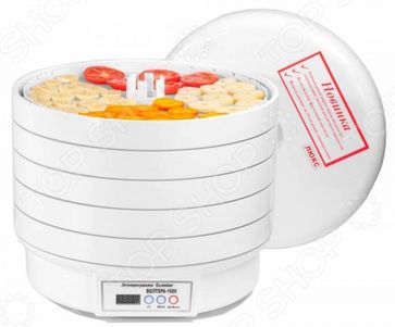 Сушилка для овощей и фруктов Волтера 1000 Люкс с таймером и электронным блоком управления станет отличным дополнением к набору вашей бытовой техники для кухни. Представленная модель предназначена для быстрой и качественной консервации зелени, овощей и фруктов для их дальнейшего хранения. Устройство позволяет быстро заготовить на зиму грибы, овощи, ягоды и фрукты. Благодаря большой мощности в сушилке можно использовать до 15 поддонов одновременно и загружать для сушки 15-16 кг сырья. Время сущки зависит от категории выбранных продуктов. Для сушки фруктов вам понадобится в среднем 8 12 часов. Для сушки грибов, овощей и бобовых всего 6 10 часов. При этом вам не придется постоянно крутить поддоны и переставлять их местами. Благодаря удобной продуманной конструкции прибор высушит любые ваши продукты равномерно и качественно, не зависимо от того, на какой высоте стоит поддон. Для удобства использования представленная модель оснащена регулятором температуры. В сушилке вентилятор располагается внизу основания. Поток воздуха проходит вверх через поддоны, что помогает равномерно и быстро продувать продукты на любом ярусе. Температура в сушилке регулируется в рамках от 40 С до 70 С. Оцените преимущества Скорость приготовления партия сухофруктов будет готова через несколько часов. Устройство сэкономит место на кухне и вам не придется раскладывать продукты также, как при естественной сушке. Равномерные потоки разогретого воздуха позволяют сохранить все полезные свойства свежих продуктов и их первоначальный вкус. Мощность потребления: 1 кВт. Регулировка температуры сушки: есть. Регулировка высоты поддона: нет. Наружный диаметр решета 388 мм. Номинальная загрузка на одном решете составляет не более 1 кг. Эффективность сушки составляет 85 . Температура сушки: 40 60 С. Если вы вегетарианец или сыроед, то сушилка позволит вам готовить вкусные и полезные блюда из овощей и фруктов. Ведь низкотемпературная сушка сохраняет до 97 витаминов. None Возможен самовывоз. Есть дост