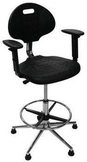 Стул PRO INDUSTRIAL с подлокотниками предназначен для организации рабочего места в мастерских, автосервисах, промышленных предприятиях; крестовина, газлифт и несущий каркас изготовлены из высококачественной стали; комфортная спинка и мягкое сиденье выполнены из стойкого полиуретанового материала; пять лучевых опор для придания большей устойчивости; высота стула регулируется по высоте, спинка стульев регулируется по высоте и углу наклона; у стула с подлокотниками опорное кольцо для ног регулируется по высоте; выдерживает до 130 кг. статической нагрузки.