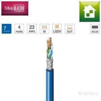 Ethernet CAT кабель на катушке. Спецификация Cat7. Длина 500 метров. Кабель витая пара экранированная (S/FTP), 4 пары (23AWG), проводник одножильный (solid) медь электролитическая отожженная (BC), изоляция проводника пенополиуретан (Foam PE), индивидуальный экран каждая пара в фольге Beldfoil (алюминиево-полиэфирная фольга), общий экран – медная оплетка, внешняя оболочка (LSZH) для внутренней проводки. Применение - Внутри помещений. Кабель рабочей зоны. Соединения в сетях 10 Гбит/с на частоте до 1000 МГц. Поддерживаемые приложения - 10GBase-T (10 Gigabit Ethernet), 1000Base-T (Gigabit Ethernet), 100 Base-T, 10 Base-T, FDDI, ATM, другие приложения кабельных систем категории 6a и 7. Low Smoke Zero Halogen – малодымный безгалогенный компаунд. Кабели с изоляцией проводников и внешней оболочкой из негорючего безгалогенного компаунда LSZH обладают свойствами малодымности и низкокоррозийности. Малодымность – кабель не распространяет горение, а при воздействии открытого пламени в случае пожара не выделяет дыма и чёрной сажи подобно материалам ПВХ, ПЭ и др. Низкокоррозийность – кабель изготовлен из специальных материалов, не содержащих высокотоксичных галогенов, таких как фтор, хлор, бром и йод. Возможные цвета оболочки: Синий. Производитель: США. None
