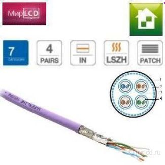 Ethernet CAT кабель на катушке. Спецификация Cat7. Длина 500 метров. Кабель витая пара экранированная (S/FTP), 4 пары (26AWG), проводник многопроволочная (stranded) медь, изоляция проводника (PVC), индивидуальный экран каждая пара в фольге алюминизированная полиэстерная пленка, общий экран – оплетка, внешняя оболочка (LSZH) для внутренней проводки. Применение - Внутри помещений. Организация межсоединений в подсистеме рабочей зоны СКС категории 7 в условиях повышенных электромагнитных помех и межкабельных наводок. Изготовление патч-кордов. Подходит для высокоплотных систем и широкополосной передачи видеосигналов CATV. Соединения в сетях 10 Гбит/с на частоте до 600 МГц. Поддерживаемые приложения - Gigabit Ethernet 1000BASE-T, 10 Gigabit Ethernet 10GBASE-T, 1.2/2.4Gbs ATM, цифровое и аналоговое видео, IEEE 802.3af (PoE), IEEE 802.3at (PoE+), другие приложения кабельных систем категории 7. Low Smoke Zero Halogen – малодымный безгалогенный компаунд. Кабели с изоляцией проводников и внешней оболочкой из негорючего безгалогенного компаунда LSZH обладают свойствами малодымности и низкокоррозийности. Малодымность – кабель не распространяет горение, а при воздействии открытого пламени в случае пожара не выделяет дыма и чёрной сажи подобно материалам ПВХ, ПЭ и др. Низкокоррозийность – кабель изготовлен из специальных материалов, не содержащих высокотоксичных галогенов, таких как фтор, хлор, бром и йод. Возможные цвета оболочки: Фиолетовый, Красный, Белый. Производитель: США. None