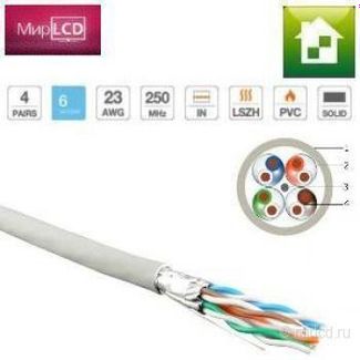 Ethernet CAT кабель на катушке. Спецификация Cat6. Длина 500 метров. Кабель витая пара экранированная (U/FTP), 4 пары (23AWG), проводник одножильный (solid) медь электролитическая отожженная (BC), изоляция проводника (PVC), индивидуальный экран каждая пара в фольге алюминизированная полиэстерная пленка, внешняя оболочка (LSZH) для внутренней проводки. Применение - Внутри помещений. Построение магистральной и горизонтальной подсистем СКС категории 6 в условиях незначительных электромагнитных помех. Передача сигналов 1 Гбит/с на частоте до 250 МГц. Поддерживаемые приложения - 10–1000 Мбит/с Ethernet (10BASE-T, Fast 100BASE-TX, Gigabit 1000BASE-T), ATM-622 Мбит/с, 100VG-AnyLAN, Token Ring, Firewire, IEEE 802.3af (PoE), IEEE 802.3at (PoE+), другие приложения кабельных систем категории 6. Low Smoke Zero Halogen – малодымный безгалогенный компаунд. Кабели с изоляцией проводников и внешней оболочкой из негорючего безгалогенного компаунда LSZH обладают свойствами малодымности и низкокоррозийности. Малодымность – кабель не распространяет горение, а при воздействии открытого пламени в случае пожара не выделяет дыма и чёрной сажи подобно материалам ПВХ, ПЭ и др. Низкокоррозийность – кабель изготовлен из специальных материалов, не содержащих высокотоксичных галогенов, таких как фтор, хлор, бром и йод. Возможные цвета оболочки: Серый, Голубой, Черный, Зеленый, Оранжевый, Розовый, Красный, Фиолетовый, Белый, Желтый. Производитель: США. None