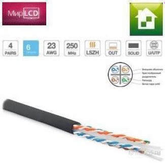 Ethernet CAT кабель на катушке. Спецификация Cat6. Длина 500 метров. Кабель витая пара неэкранированная (U/UTP), 4 пары (23AWG) с разделителем, проводник одножильный (solid) медь электролитическая отожженная (BC), изоляция проводника (HDPE), внешняя оболочка (LSZH) для внешней проводки. Применение - Внутри и вне помещений. Благодаря оболочке LSZH может использоваться внутри помещений. Построение магистральной подсистемы СКС категории 6 в условиях незначительных электромагнитных помех, влаги и УФ излучения. Благодаря крестообразному разделителю витые пары разнесены в пространстве, что снижает межпарные наводки. Применяется для прокладки в кабельной канализации, шахтах и коллекторах. Может прокладываться снаружи стен зданий и сооружений. Передача сигналов 1 Гбит/с на частоте до 250 МГц. Поддерживаемые приложения - 10–1000 Мбит/с Ethernet (10BASE-T, Fast 100BASE-TX, Gigabit 1000BASE-T), ATM-622 Мбит/с, 100VG-AnyLAN, Token Ring, Firewire, IEEE 802.3af (PoE), IEEE 802.3at (PoE+), другие приложения СКС категории 6. Low Smoke Zero Halogen – малодымный безгалогенный компаунд. Кабели с изоляцией проводников и внешней оболочкой из негорючего безгалогенного компаунда LSZH обладают свойствами малодымности и низкокоррозийности. Малодымность – кабель не распространяет горение, а при воздействии открытого пламени в случае пожара не выделяет дыма и чёрной сажи подобно материалам ПВХ, ПЭ и др. Низкокоррозийность – кабель изготовлен из специальных материалов, не содержащих высокотоксичных галогенов, таких как фтор, хлор, бром и йод. Возможные цвета оболочки: Черный. Производитель: США. None