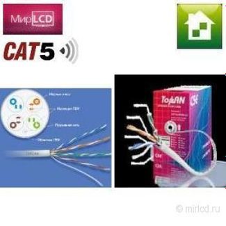 Ethernet CAT кабель на катушке. Спецификация Cat 5e. Длина 305 метров. Ethernet CAT кабель для внутренней проводки. Производительность 100 MГц. Геометрия: Четыре симметричных витых пары UTP (неэкранированная витая пара). Проводник твердая медь. Размер проводника 24 AWG х 4P. Изоляция проводника PVC (поливинилхлорид). Разрывная нить Ripcord нейлоновая нить для легкого вытягивания и снятия оболочки из ПВХ. Оболочка PVC (поливинилхлорид). Кабель состоит из 4-х пар одножильных медных проводников калибра 24 AWG, заключенных в общую ПВХ оболочку. Для улучшения характеристик кабеля, каждая пара имеет свой шаг скрутки. Для удобства снятия ПВХ оболочки в конструкции кабеля предусмотрена разрывная нить. Для удобства работы на внешней оболочке кабеля нанесены метровые метки (европейский стандарт), что позволяет точно отмерить кабель или определить длину сегмента. Кабели TopLan категории 5e (Cat5e) UTP (неэкранированные витые пары) изготавливаются и испытываются в соответствии со стандартами категории 5е ANSI/TIA/EIA-568-B.2 и международному стандарту ISO/IEC 11801. Возможные цвета оболочки: Серый. None