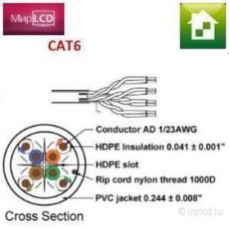 Ethernet CAT кабель на катушке. Спецификация Cat6. Длина 305 метров. Производительность 660 MГц и позволяет передавать 3.2 Гбит / с. Область применения: Интернет сети, мультирум системы. CAT6 является стандартом кабеля для Gigabit Ethernet и других сетевые протоколов, которые обратно совместимы с Cat 5 / 5е. Полиэтиленовый изолятор с более строгими спецификациями так что затухание, NEXT (Near End Crosstalk) и PSNEXT (Power Sum NEXT) значительно ниже по сравнению с Cat-5 / 5e. Геометрия: Четыре симметричных витых пары UTP (неэкранированная витая пара). Проводник твердая медь. Размер проводника 23 AWG х 4P. Изоляция проводника HDPE (полиэтилен высокой плотности). Разделитель (Separator). Разрывная нить Ripcord нейлоновая нить для легкого вытягивания и снятия оболочки из ПВХ. Оболочка PVC (поливинилхлорид). Кабели Tributaries CAT5E сертифицированы для удовлетворения потребностей современных коммерческих и жилых сетей и аудио приложений кабелей с витой парой (для передачи данных и голоса). Кабели Tributaries категории 6 (Cat6) UTP (неэкранированные витые пары) изготавливаются и испытываются в соответствии со стандартами категории 6 c(ETL) CM, ETL CM, FT4, RoH. BMP Box - Кабель свободной намотки в коробке "reel-less" – "без катушки". Возможные цвета: Cиний, серый, белый, желтый. Производитель: США. None