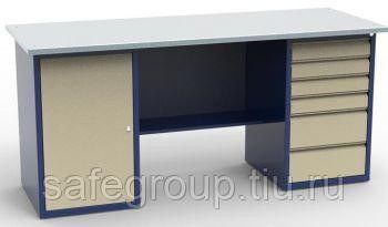 Монтажный верстак СВ-2Т.01.06.19 Качественный монтажный верстак должен иметь прочный каркас с надежной столешницей. Этим требованиям соответствует монтажный стол Святогор СВ-2Т.01.06.19 из холоднокатаной стали: тумба с дверцей и полкой + тумба с 6-ю выдвижными ящиками на телескопических шариковых направляющих; дополнительно пользователи могут приобрести подходящую подсветку, облегчающую процесс сборки деталей, оборудовать стол перфорированным металлическим экраном с разнообразными держателями для часто используемого инструмента, а также прочными, функциональным полочками; столешница монтажного стола – МДФ 22 мм.+ 2 мм. оцинкованный лист; нагрузка на полку тумбы 20 кг. None