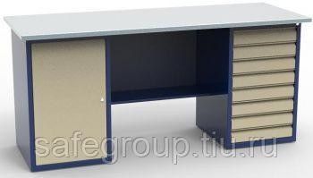 Монтажный верстак СВ-2Т.01.08.19 Качественный монтажный верстак должен иметь прочный каркас с надежной столешницей. Этим требованиям соответствует монтажный стол Святогор СВ-2Т.01.08.19 из холоднокатаной стали: тумба с дверцей и полкой + тумба с 8-ю выдвижными ящиками на телескопических шариковых направляющих; дополнительно пользователи могут приобрести подходящую подсветку, облегчающую процесс сборки деталей, оборудовать стол перфорированным металлическим экраном с разнообразными держателями для часто используемого инструмента, а также прочными, функциональным полочками; столешница монтажного стола – МДФ 22 мм.+ 2 мм. оцинкованный лист; нагрузка на полку тумбы 20 кг. None
