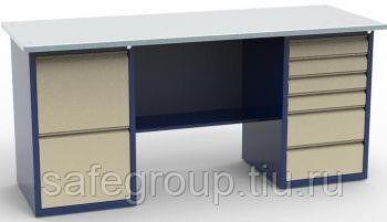 Монтажный верстак СВ-2Т.02.06.19 Монтажный стол Святогор СВ-2Т.02.06.19 создан из прочной холоднокатаной стали: каркас, обработанный полимерно-порошковым средством, обладает повышенной химической устойчивостью к разного рода веществам, а также механической порче; это значительно улучшает эксплуатационные характеристики изделия; не боится коррозии, отслаивание покрытия не происходит, поэтому стол имеет аккуратный первоначальный вид даже при активном проведении монтажных работ; рабочий стол монтажника станет более функциональной производственной мебелью благодаря продуманному оснащению дополнительными комплектами подкатных тумб, разнообразными модификациями навесного оборудования, удобными блоками из определенного количества розеток, вытяжными и антистатическими устройствами, системой заземления; столешница монтажного стола – МДФ 22 мм.+ 2 мм. оцинкованный лист; две тумбы с 2-мя и 6-ю выдвижными ящиками на телескопических шариковых направляющих; нагрузка на ящик 20 кг. None