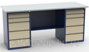 Монтажный верстак СВ-2Т.05.05.19 Качественный монтажный верстак должен иметь прочный каркас с надежной столешницей. Этим требованиям соответствует монтажный стол Святогор СВ-2Т.05.05.19 из холоднокатаной стали: 2 тумбы с 5-ю выдвижными ящиками на телескопических шариковых направляющих; дополнительно пользователи могут приобрести подходящую подсветку, облегчающую процесс сборки деталей, оборудовать стол перфорированным металлическим экраном с разнообразными держателями для часто используемого инструмента, а также прочными, функциональным полочками; столешница монтажного стола – МДФ 22 мм.+ 2 мм. оцинкованный лист; нагрузка на полку тумбы 20 кг. None