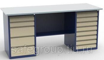 Монтажный верстак СВ-2Т.05.08.19 Качественный монтажный верстак должен иметь прочный каркас с надежной столешницей. Этим требованиям соответствует монтажный стол Святогор СВФ-2Т.05.08.19 из холоднокатаной стали: 2 тумбы с 8-ю выдвижными ящиками на телескопических шариковых направляющих; дополнительно пользователи могут приобрести подходящую подсветку, облегчающую процесс сборки деталей, оборудовать стол перфорированным металлическим экраном с разнообразными держателями для часто используемого инструмента, а также прочными, функциональным полочками; столешница монтажного стола – МДФ 22 мм.+ 2 мм. оцинкованный лист; нагрузка на полку тумбы 20 кг. None