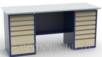 Монтажный верстак СВ-2Т.06.07.19 Качественный монтажный верстак должен иметь прочный каркас с надежной столешницей. Этим требованиям соответствует монтажный стол Святогор СВ-2Т.06.07.19 из холоднокатаной стали: тумба с 6-ю ящиками + тумба с 7-ю выдвижными ящиками на телескопических шариковых направляющих; дополнительно пользователи могут приобрести подходящую подсветку, облегчающую процесс сборки деталей, оборудовать стол перфорированным металлическим экраном с разнообразными держателями для часто используемого инструмента, а также прочными, функциональным полочками; столешница монтажного стола – МДФ 22 мм.+ 2 мм. оцинкованный лист; нагрузка на полку тумбы 20 кг. None