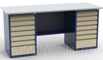 Монтажный верстак СВ-2Т.07.07.19 Качественный монтажный верстак должен иметь прочный каркас с надежной столешницей. Этим требованиям соответствует монтажный стол Святогор СВ-2Т.07.07.19 из холоднокатаной стали: 2 тумбы с 7-ю выдвижными ящиками на телескопических шариковых направляющих; дополнительно пользователи могут приобрести подходящую подсветку, облегчающую процесс сборки деталей, оборудовать стол перфорированным металлическим экраном с разнообразными держателями для часто используемого инструмента, а также прочными, функциональным полочками; столешница монтажного стола – МДФ 22 мм.+ 2 мм. оцинкованный лист; нагрузка на полку тумбы 20 кг.; None