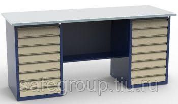 Монтажный верстак СВ-2Т.08.08.19 Качественный монтажный верстак должен иметь прочный каркас с надежной столешницей. Этим требованиям соответствует монтажный стол Святогор СВ-2Т.07.07.19 из холоднокатаной стали: 2 тумбы с 8-ю выдвижными ящиками на телескопических шариковых направляющих; дополнительно пользователи могут приобрести подходящую подсветку, облегчающую процесс сборки деталей, оборудовать стол перфорированным металлическим экраном с разнообразными держателями для часто используемого инструмента, а также прочными, функциональным полочками; сстолешница монтажного стола – МДФ 22 мм.+ 2 мм. оцинкованный лист; нагрузка на полку тумбы 20 кг. None